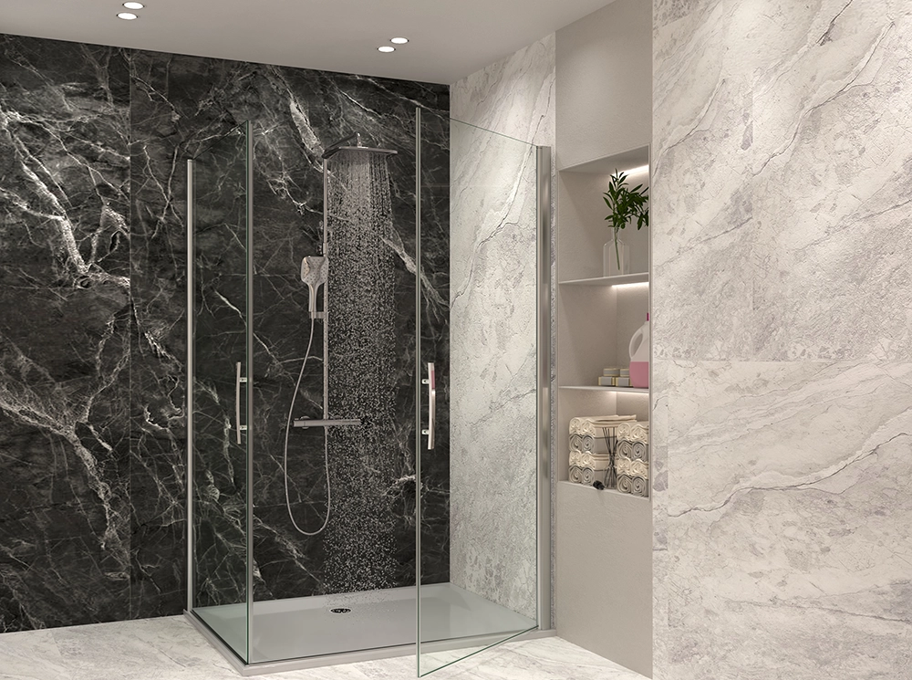 إرتق بتصميم حمامك مع كبائن كالما التي تجمع بين التصميم العصري الفخم، والألوان الراقية من الكروم والأسود، والإكسسورات المبتكرة، لتمنح حمامك لمسة عصرية مميزة.